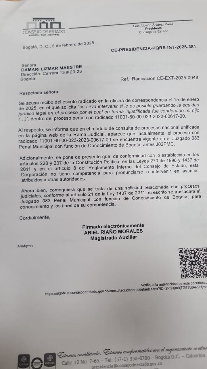 8/04/2025 | ANÓNIMO | Respuesta PQRS-Radicación CE-EXT-2025 – 575 | PRESIDENCIA | Ver Documento |